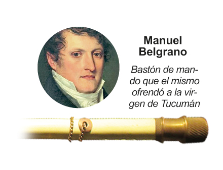 Como todos los grandes símbolos argentinos, este también comienza con Belgrano. No es de extrañarse, este prócer era un gran abogado y tenía una clara idea de lo que algunos objetos podrían llegar a representar. Se trata de un bastón completamente blanco con empuñadura y regatón de latón; no es muy suntuoso, aunque sí elegante, que hacía juego con los pantalones blancos ajustados de la época.
