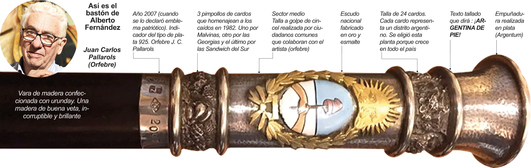El patriota estaba determinado a quedarse con el negocio. A cambio de promoción y reconocimiento (que no es poco) el bastón al pueblo argentino no le costaría nada y todos quedamos contentos. Pero es que Pallarols, de verdad, es un gran artista y comenzó a escuchar tanto al mandatario por venir, como al pueblo; y desde entonces ha capitalizado cada idea que ha tenido. Hacer participar a la gente dando pequeños golpes al mango de plata argentum por todo del país. También coloca en el mango del bastón ideas y caprichos de los presidentes; no se ha privado de nada. Los problemas comenzaron cuando una nueva generación intentó hacerse del negocio. Las grietas fueron tierra fértil para los culebrones y las escaramuzas en 2015. Cristina Fernández se encontró a solas unos minutos con el bastón de Macri cuando visitó el taller de Pallarols. Eso fue suficiente para una demostración mediática, que: nuestros mandatarios creen en las brujas.