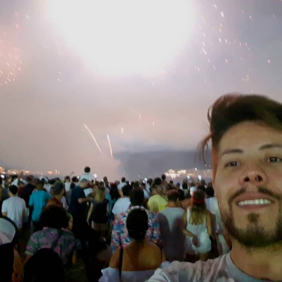 Fernando Oropel. El diseñador de alta costura local mostró su celebración bajo los fuegos artificiales de la ciudad de Copacabana (Brasil)