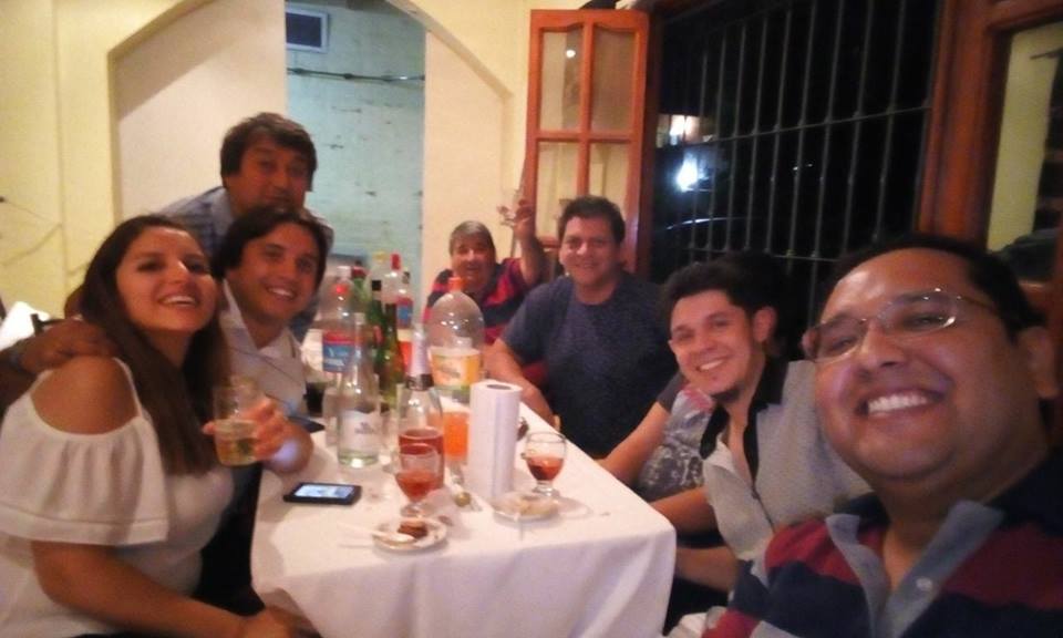 Pablo Carrizo. “Feliz 2018 para todos..!!’ puso el bailarín y delegado de la delegación del PreCosquín provincial (en el extremo derecho) quien la pasó rodeado de sus afectos.