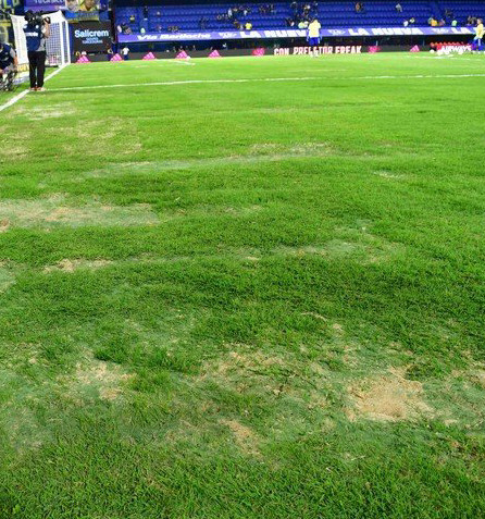 Se sabía que la cancha de la Bombonera no estaba en óptimas condiciones. De hecho, el vicepresidente de Boca, Juan Román Riquelme, había pedido paciencia. El viernes, el césped había sido cortado y se había fertilizado. Pero eso no impidió los previsibles problemas en el partido ante Colón: algunos sectores, sobre todo en el lado de Casa Amarilla, en el que atacó el Xeneize, en el primer tiempo, con muchos problemas y varias veces se vio volar arena.