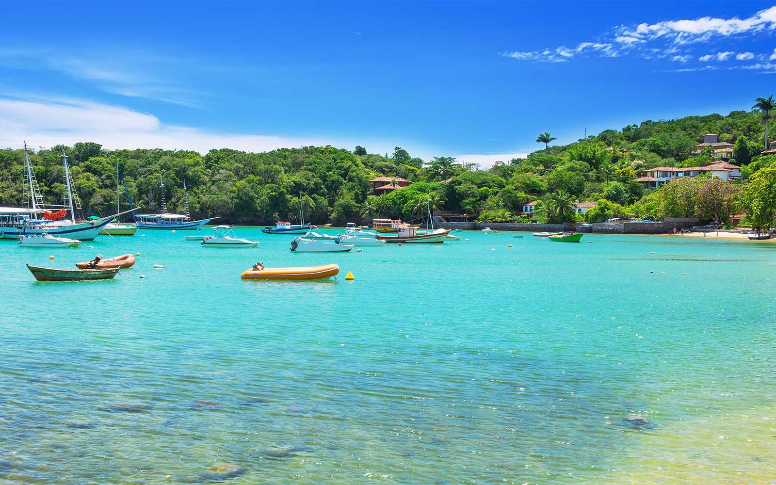 Está localizada en una península con 23 playas. A sólo dos horas de Río de Janeiro, esta antigua aldea de pescadores tiene diversas aventuras que ofrecer a quienes llegan en busca de playas, naturaleza, deportes y vida nocturna. El clima es cálido y benigno. Los vientos y su especial topografía hacen que sea una playa atípica por lo poco que llueve. Cuando en Río de Janeiro (a menos de 200 km) está lloviendo, lo más seguro es que en Búzios esté soleado.