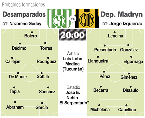 Desamparados volverá a presentarse ante su gente buscando recuperar la confianza de sus hinchas. Es que en su última presentación como local se fue recriminado por la derrota ante Peñarol que derivó en su semana más complicada esta temporada. Como dice el refrán "no hay mal que por bien no venga", el golpe sirvió para toparse con la realidad y encontrar una salida. Después de declaraciones polémicas de su presidente y de su técnico, el plantel se fortaleció y fue a San Luis a dar el batacazo derrotando al puntano con lo justo, pero con sobrada actitud. Pero eso ya pasó y ahora llegará el momento de plasmar esa mejoría ante su gente. El técnico Nazareno Godoy, que realizó siete variantes para ir a San Luis repetirá el equipo por primera vez desde que está en el cargo. Enfrente tendrá a un equipo duro, que viene de conseguir dos victorias consecutivas en menos de diez días pero que intentará no sentir ese desgaste físico producto de los viajes.