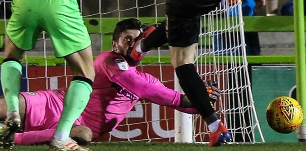El arquero del Forest Green recibió una brutal entrada por parte de un delantero de Mansfield, que le hizo perder varios dientes y por ello fue trasladado de inmediato al hospital, donde fue operado y quedó internado.