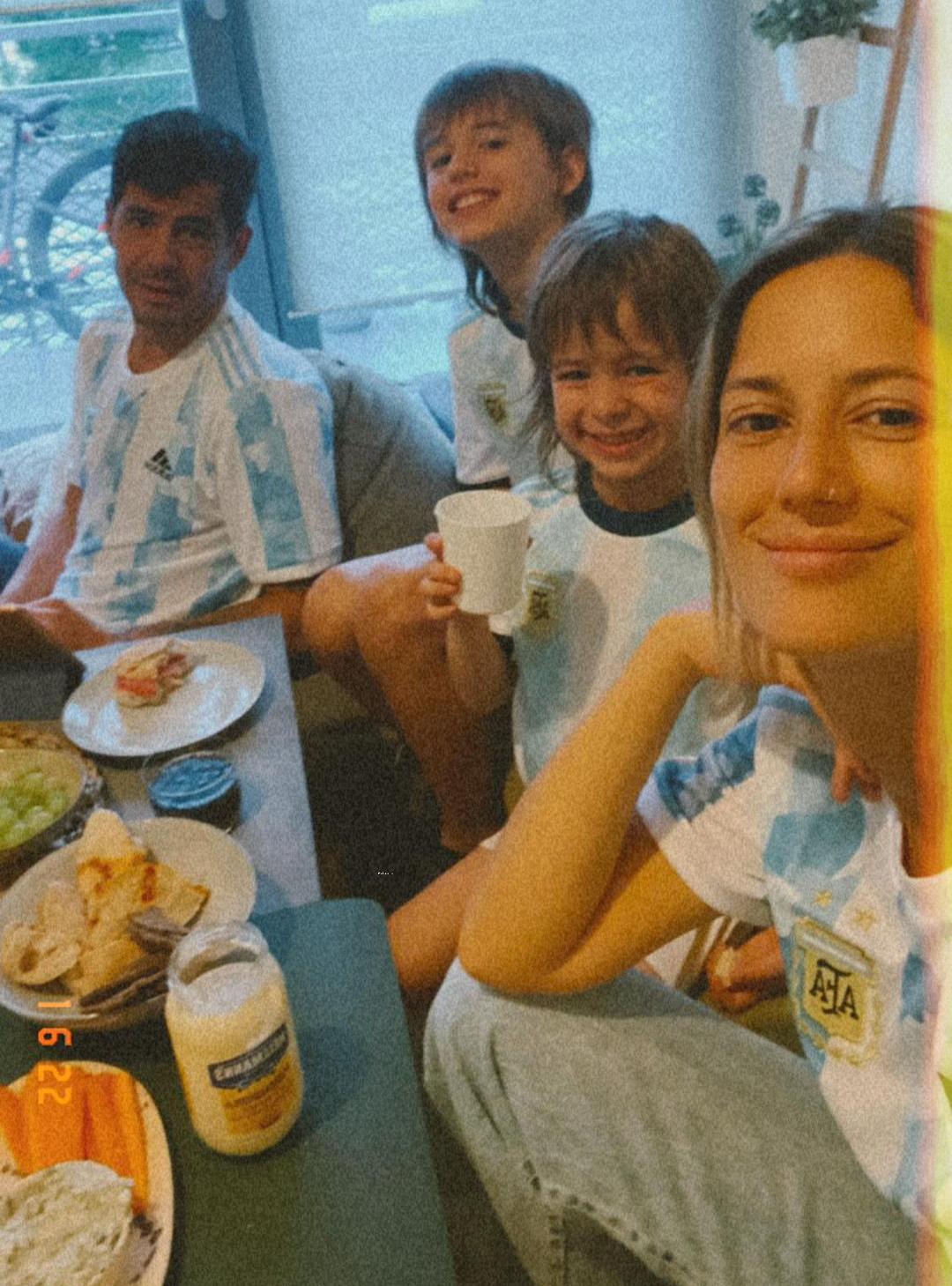También desde Benfica, Lucas Ordoñez vivió el partido junto su familia. Leticia Corrales, su hijo Ignacio y las pequeñas Priscila y Sofía. Lo mismo hizo Pablo Alvarez junto a sus hijos Valentino y Matteo. Los chicos también demostraron como sienten a la Albiceleste a pesar de vivir del otro lado del charco, vieron el partido con camisetas, piluso y hasta una réplica de la Copa del Mundo.