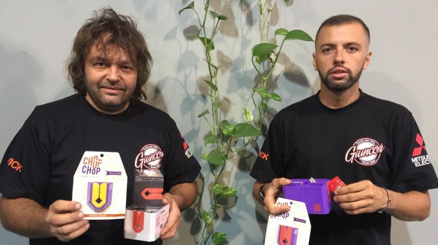 Vicente Corse y Nils Giuntoli, dos amigos de La Tablada, trabajaban juntos en un taller de matricería. A partir de su experiencia en el moldeado de plásticos, desarrollaron un producto que resuelve un problema típico para cualquier comensal que se sienta en la mesa de un local de fast food. Chop Chop es un organizador de condimentos que cuenta con una cuchilla que facilita la –muchas veces titánica– tarea de abrir un sobrecito de mayonesa o ketchup. “Vimos que podíamos resolver la necesidad de abrir un sachet sin tener que usar los dientes”, recuerda Giuntoli.