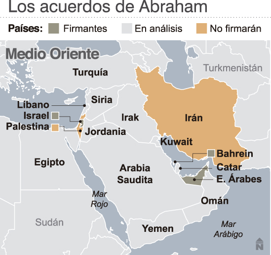 Pero, mientras los acuerdos son vistos por la mayoría de los países del Golfo Pérsico como una muy buena oportunidad de hacer negocios con Israel, que tiene una de las industrias tecnológicas más desarrolladas del mundo y es un gran emisor de turistas de alto poder adquisitivo, para algunos países como Irán o para los palestinos, estos acuerdos representan una traición para los países árabes al no contemplar una solución al problema palestino.