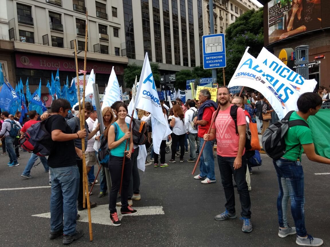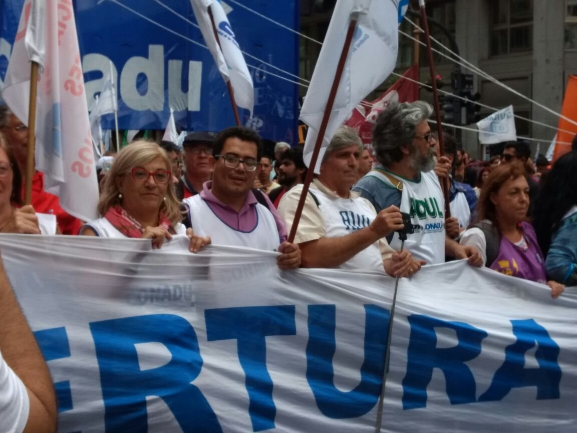 Con la presencia del secretario general Jaime Barcelona y varios afiliados, ADICUS San Juan dio el presente en la convocatoria nacional docente. En este sentido, el gremio que nuclea a los docentes universitarios marchó hacia la Plaza de Mayo junto a otros miles de docentes de diferentes provincias del país.