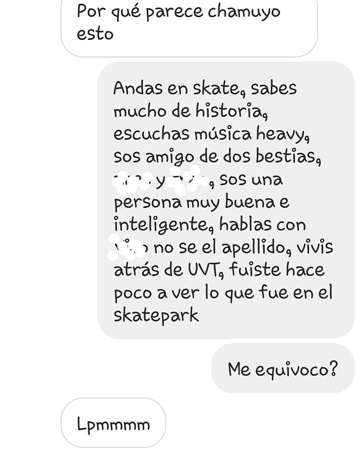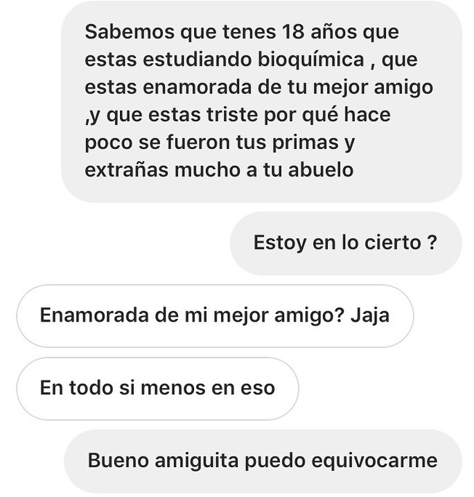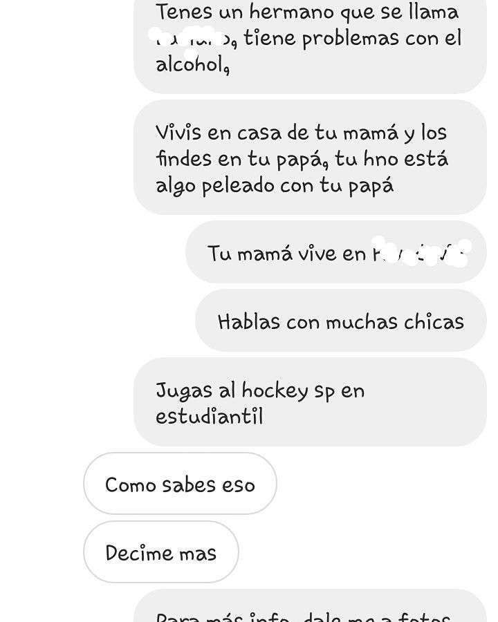 Esas aplicaciones generan estos chats inventados, en los que después se puede tachar -para simular cierta desprolijidad casual- los supuestos nombres y caras. Así, cualquiera puede convertirse en un "adivinador" si empieza a autopromocionarse como tal y le pone creatividad a la ficción de la conversación.