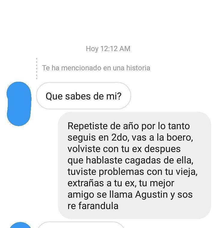 La charla está tal cual, como en una conversación de mensajes directos, por lo que la sensación final es que efectivamente esa interacción entre dos cuentas distintas se dio. Porque, en definitiva, sólo se trata de eso: alguien detrás de la cuenta anónima utilizando un fake chat simulator. Cualquiera de las tantas miles de aplicaciones y páginas que existen para poder ficcionalizar un chat entre dos o más personas de cualquiera de las redes sociales que tengan instaladas.