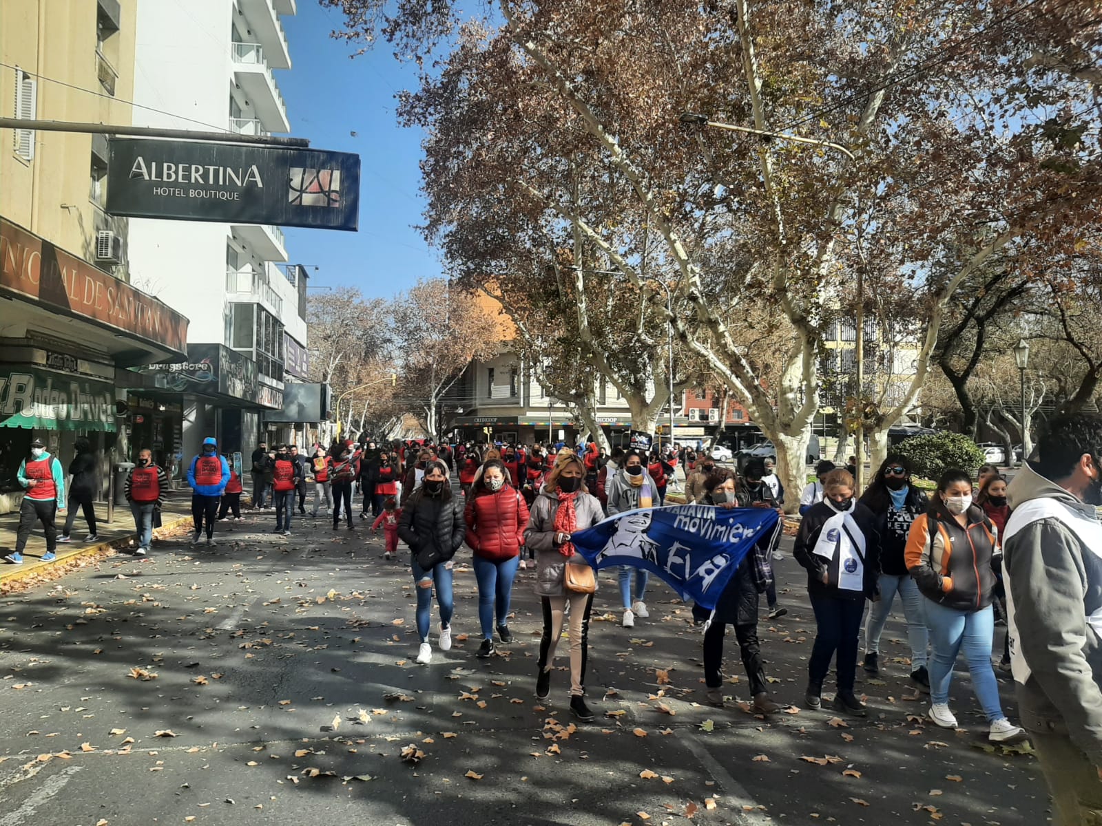La concentración de cientos de personas tuvo lugar a las 11 horas en la Plaza 25 de Mayo y luego marcharon por tres cuadras manifestándose y cortando la circulación vehicular del eje capitalino.