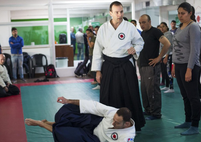 Montero explicó que fue necesario "repensar las técnicas del Aikido para que sean útiles en las situaciones particulares que los oficiales pueden encontrar en la calle". "La idea fue reformar un poco este arte marcial manteniendo la base de la no confrontación y el trabajo con la fuerza del oponente", señaló, durante la primera clase.