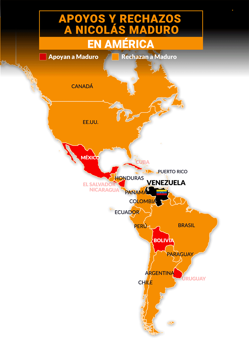 Junto a México quedó alineado el gobierno uruguayo de Tabaré Vázquez y los países que integraron junto a Venezuela el ALBA (Alternativa Bolivariana para las Américas): Cuba, Bolivia, Nicaragua y El Salvador. Los mandatarios de estos cuatro países, Miguel Díaz Canel, Evo Morales, Daniel Ortega y Salvador Sánchez Cerén fueron los únicos de la región que asistieron al acto de reasunción de Nicolás Maduro el 10 de enero pasado.