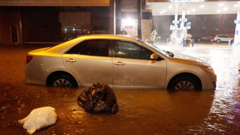 Los videos en las redes sociales mostraron autos sumergidos en las carreteras y agua entrando en estaciones de subte y viviendas después de que un aguacero impulsado por el viento rompió récords de lluvia y provocó una emergencia por inundación repentina sin precedentes en la ciudad de Nueva York.
