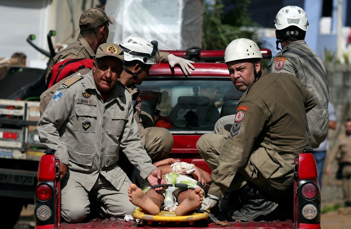 "Estaba en mi habitación, sentí un temblor y fui para el living. El techo se me cayó encima y comencé a bajar la escalera para escapar.", dijo Edvaldo, que vivía en el primer piso de uno de los edificios derrumbados.