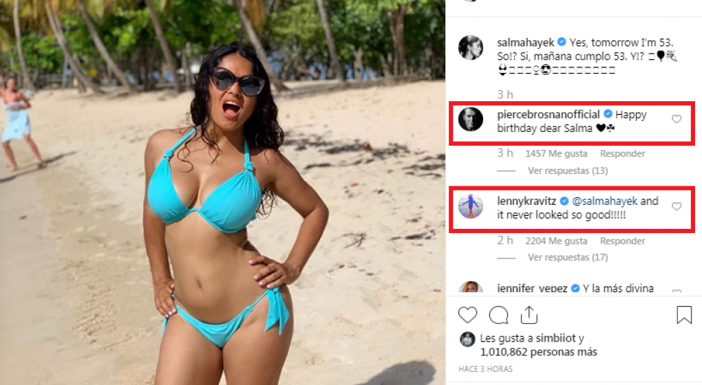 Lenny Kravitz comentó que la actriz "nunca se vio tan bien" y Pierce Brosnan escribió “Feliz cumple querida Salma”.