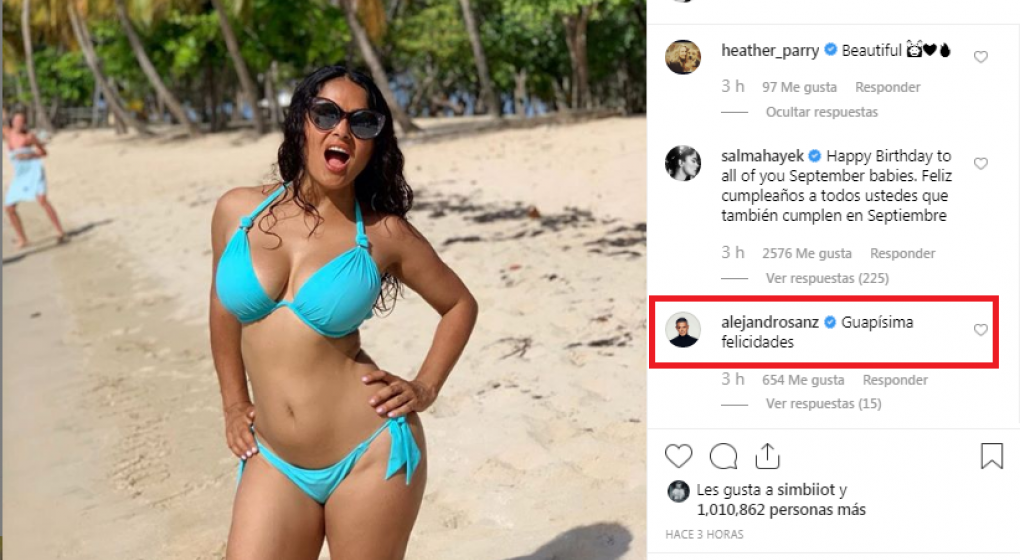 Otras celebridades que reaccionaron al posteo de Hayek con emoticones fueron Thalía, Cindy Crawford, Carlos Vives y Alejandro Sanz, entre otros.