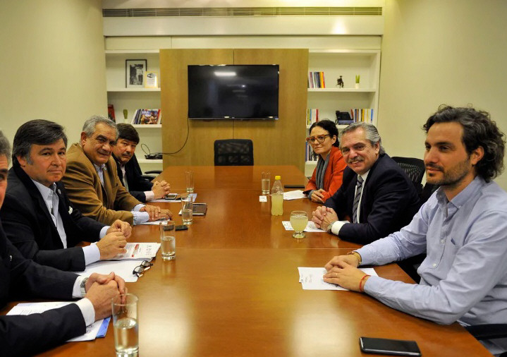 Fernández recibió ayer a la Mesa de Enlace de Entidades Agropecuarias. En el encuentro, en las oficinas del candidato del Frente de Todos en San Telmo (ciudad de Buenos Aires), estuvieron Daniel Pelegrina (Sociedad Rural), Dardo Chiesa (Confederaciones Rurales Argentinas), Carlos Achetoni (Federación Agraria) y Carlos Iannizzotto (Coninagro).