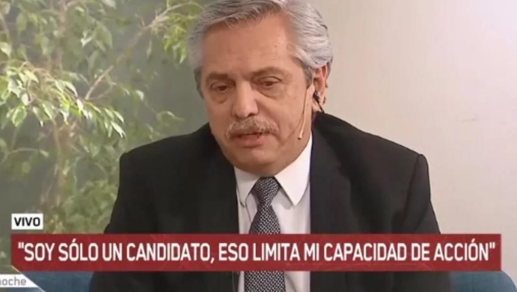 A su vez, Fernández se refirió a la postura de su compañera de fórmula de no dar entrevistas en plena campaña electoral. "Cuando hablo yo, está hablando Cristina. El candidato a presidente soy yo", recalcó. A su vez, subrayó que ambos están de acuerdo en los análisis económicos y que no hay mayores diferencias.
