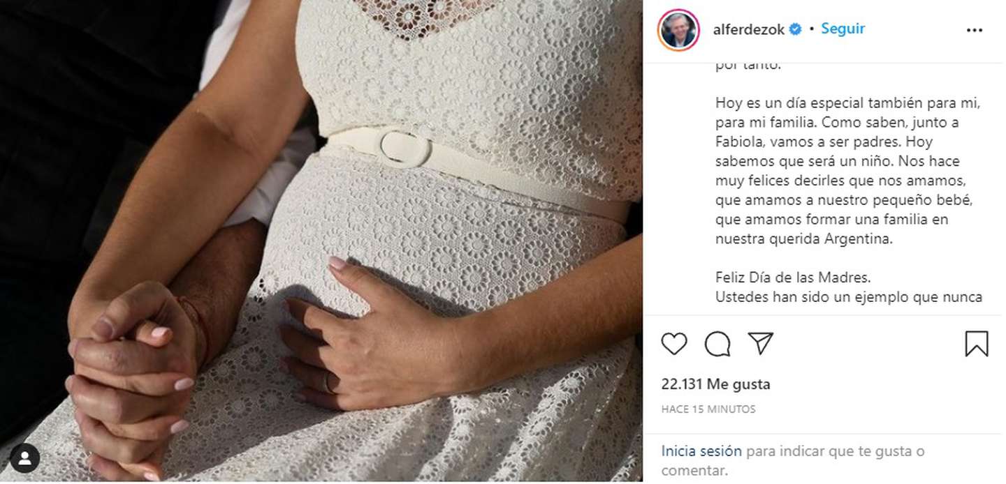 El presidente Alberto Fernández anunció en su cuenta de Instagram que el bebé que espera con su pareja la primera dama Fabiola Yañez es un nene. El mandatario expresó su saludo por el Día de la Madre y comunicó: “Hoy es un día especial también para mi, para mi familia. Como saben, junto a Fabiola, vamos a ser padres. Hoy sabemos que será un niño. Nos hace muy felices decirles que nos amamos, que amamos a nuestro pequeño bebé, que amamos formar una familia en nuestra querida Argentina”.