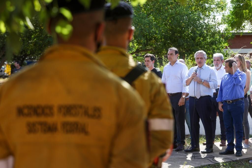 El presidente Alberto Fernández tras reunirse esta tarde con brigadistas, militares y bomberos que combaten los incendios forestales, en el departamento correntino de San Miguel, aseguró que “donde hay un argentino que sufre, que tiene una necesidad hay una Argentina que sufre, y todo el país tiene que ir en soporte”, porque “no somos 24 distritos sino un país”.
