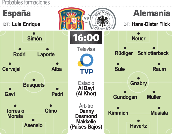 Los españoles, que en cambio vienen de una categórica victoria frente a Costa Rica con goles de Dani Olmo, Marco Asensio, Ferrán Torres (dos), Gavi, Carlos Soler y Álvaro Morata, buscarán asegurarse el pase a octavos de final y encaminarse en el objetivo de volver a ser campeones mundiales como en Sudáfrica 2010.