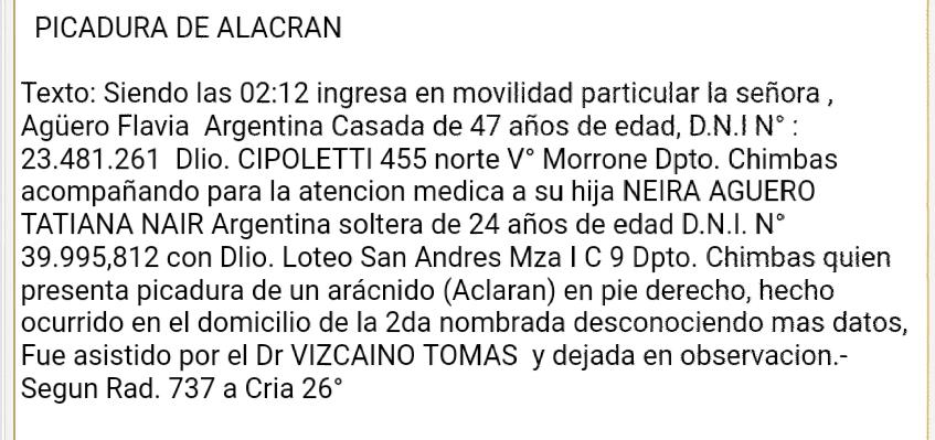 En las últimas horas ingresó al Servicio de Urgencias del Hospital Rawson una mujer que fue picada por un alacrán en el pie derecho. Tatiana Neira (24) fue asistida por los médicos y, una vez curada, quedó en observación para seguir su evolución.