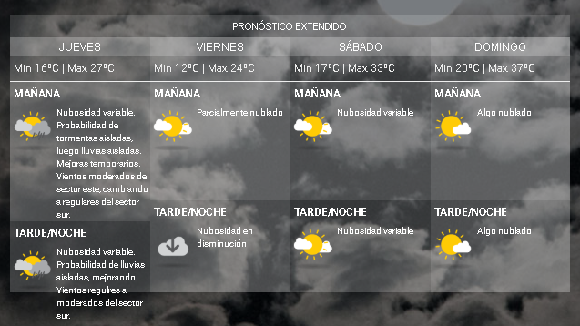 Para el viernes, la temperatura llegará hasta los 24ºC. El fin de semana se presenta con máximas que oscilarán entre los 33 y 37 grados.