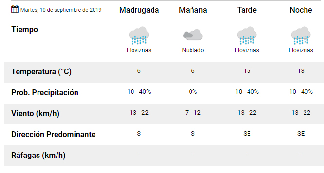 La temperatura mínima prevista estará en torno a los 6°C y la tope en 15°C.