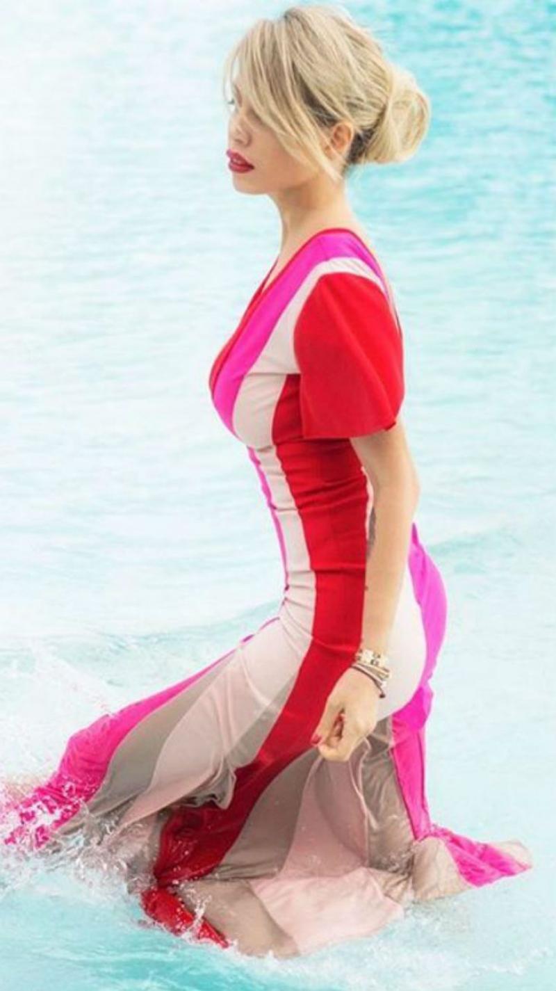 En esta oportunidad, Wanda compartió en su Instagram una serie de fotos con un vestido largo, de sugerente escote, con el que posa en una pileta. "Chica argentina", escribió la exvedette. Pero además de su belleza y sensualidad, en una de las imágenes vuelve a llamar la atención su brazo, donde se lo ve extremadamente flaco, y casi desproporcionado en relación al resto del cuerpo.