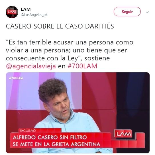 A casi un mes de la conferencia de Actrices Argentinas en apoyo a la denuncia pública contra Juan Darthés, Alfredo Casero habló del tema. En diálogo con LAM expresó su opinión y generó la polémica.