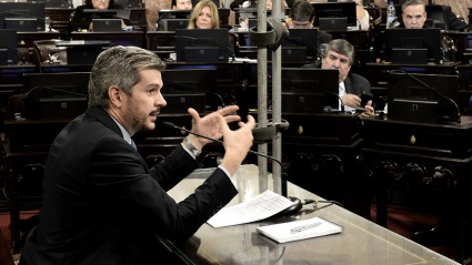 Al igual que el mes pasado en la Cámara de Diputados, Marcos Peña fue al Senado minutos antes de las 12 del mediodía para brindar su informe de gobierno. Antes de comenzar, agradeció por adelantar el día de la sesión informativa para que pueda viajar con el presidente Mauricio Macri a los Estados Unidos y expresó tener interés en "hacer un repaso y una mirada sobre la política exterior de la Argentina".
