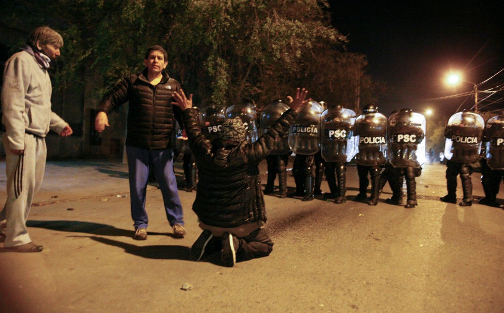 Al menos cuatro personas resultaron heridas cuando la policía de Santa Cruz reprimió una manifestación espontánea que, pasada la medianoche del viernes, intentó ingresar a la residencia oficial de la gobernadora Alicia Kirchner, en Río Gallegos, en reclamo del pago de haberes adeudados, luego de difundirse que la ex presidenta Cristina Kirchner había llegado al predio.