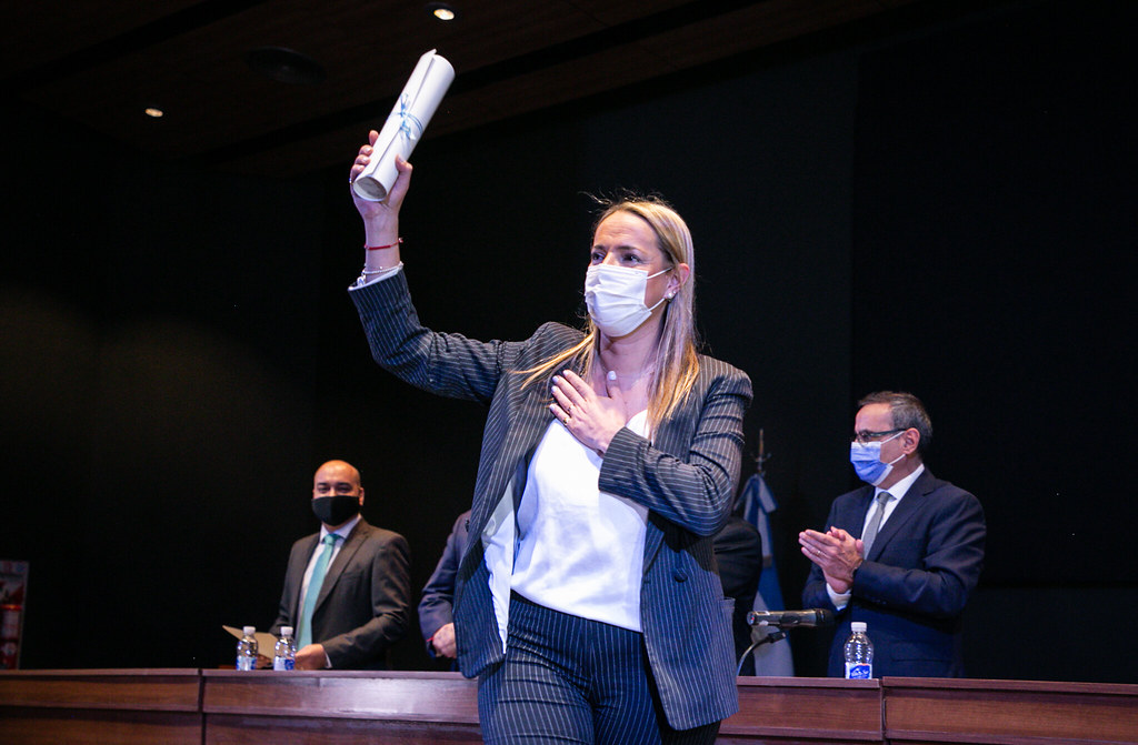 El juez federal con competencia electoral Miguel Gálvez, el fiscal federal Francisco Maldonado y el presidente de la Corte de Justicia local, Daniel Olivares Yapur, integrantes de la Junta Electoral Nacional, encabezaron hoy el acto de proclamación y entrega de diplomas a los tres diputados nacionales electos. Se tratan de Walberto Allende y Fabiola Aubone, del oficialista Frente de Todos, y Susana Laciar, de la alianza opositora Juntos por el Cambio. La actividad se desarrolló en el Auditorio Eloy Camus del Centro Cívico.