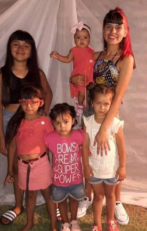 Jésica cuenta que fue mamá con apenas 16 años y no se arrepiente: Yazmín tiene 18 años y se encuentra estudiando Electromecánica; le sigue Guadalupe de 13 años, Pía, que falleció a los 3 añitos por problemas cardíacos hoy tendría 12, y las más chicas son Lourdes de 6, Yuliana de 5, Franchesca de 4 y Almita con 2 recién cumplidos. Hoy Jésica está separada, se quedó sin trabajo y dice que "hace un enorme esfuerzo para poder criarlas". "Soy ama de casa, trabajaba de empleada doméstica pero me quedé sin trabajo, hice muchas cosas para poder criar a mis hijas, trabajé en una empresa de seguridad también. Busqué trabajo por todos lados, puedo en las mañanas y en la siesta pero hoy en día está muy complicado encontrar trabajo", manifestó la joven mamá que vive en el Lote Hogar 2541 en La Bebida, Rivadavia.