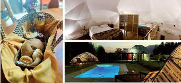 El domo en alquiler tiene capacidad para hasta 6 personas, el que están por terminar, para 4. Tienen todas las comodidades: internet, televisor, aire acondicionado, cocina con toda la vajilla, baño, ropa de cama, artículos de limpieza.