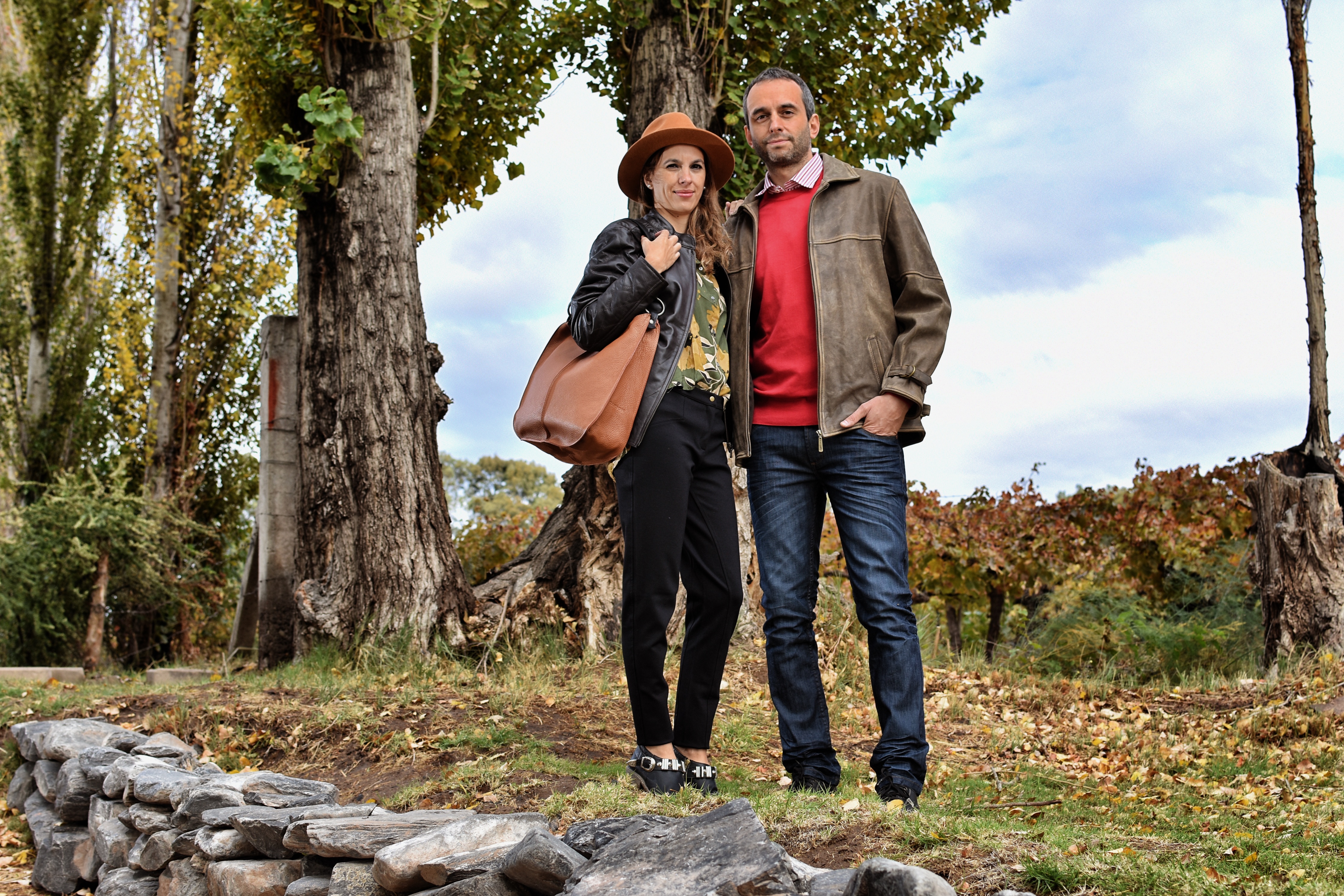 Admiración el uno por el otro. Ella: camisa de voile con terminaciones bordadas en negro ($4.540), breech negro ($3.070) y chaqueta de cuero de oveja con fuelles en puños ($21.990). Como complemento una mochila de cuero de vaca con bolsillos y flecos ($6970). Él vestido jean con bolsillos ($4.150), remera de algodón color maíz ($1.190) y campera de lana en color verde militar con detalles de costura en los hombros ($4.880).