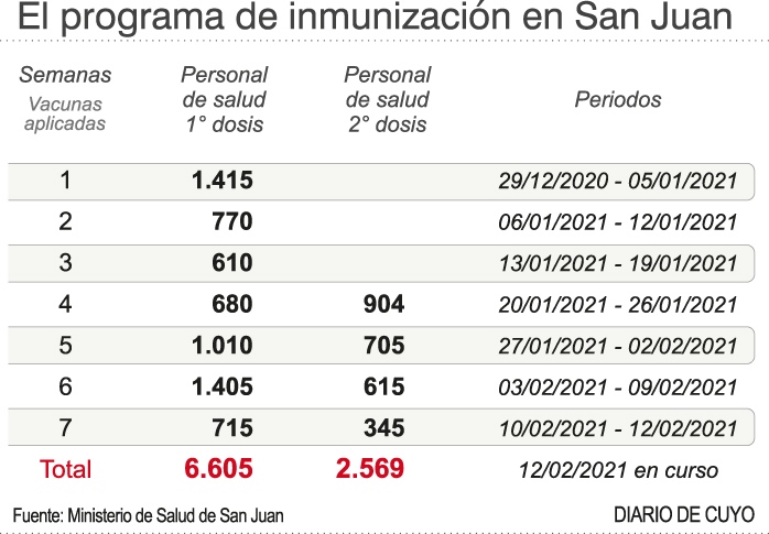 Hasta ahora, 2.569 agentes de salud completaron su esquema de vacunación contra el Covid-19 (ver infografía), es decir, recibieron dos dosis. De acuerdo a Marita Sosa, jefa de Inmunizaciones, ya aplicaron dosis a los trabajadores de las áreas Covid-19, Críticas, Unidad de Cuidados Intensivos, personal mayor a 60 años, de laboratorios, equipos de testeos, oncología, hemodiálisis, internación clínica Covid, servicios de guardia y emergencia y personal de residencias de larga estadía.