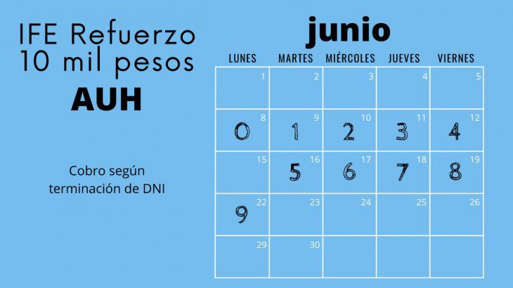 Así, quienes cobren por CBU comenzarán a percibir esa ayuda estatal desde el 23 de junio.