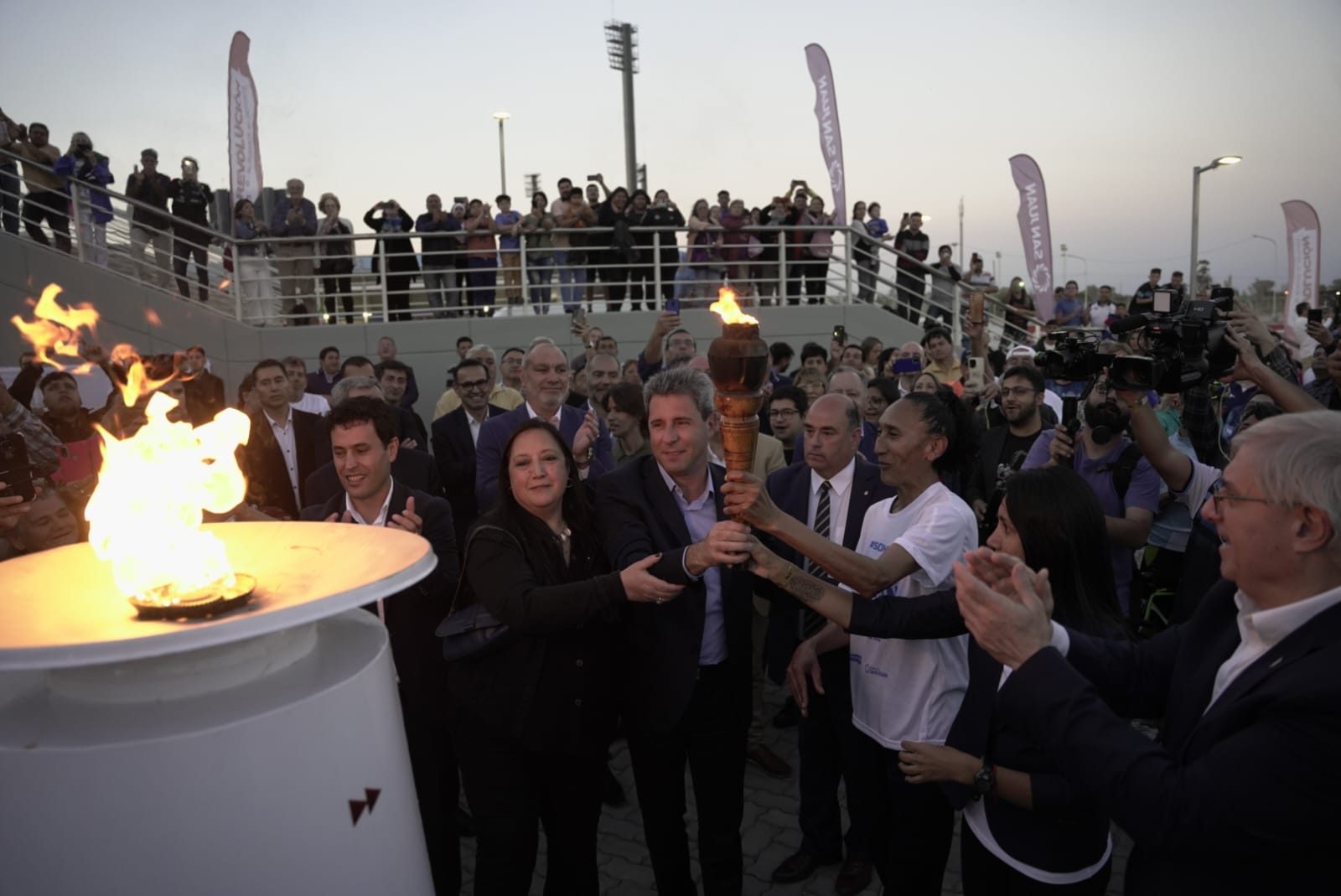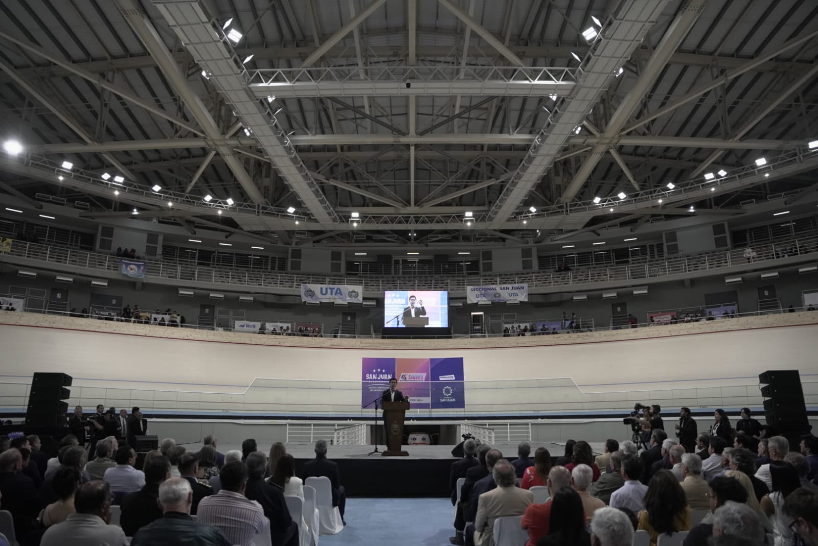 La antorcha fue trasladada por los deportistas locales, después se realizó el corte de cinta del Velódromo Multipropósito Vicente Alejo Chancay. Este escenario ya habían visto la luz hace unos meses cuando albergó al Panamericano de ciclismo en pista y también siendo sede de la temporada de pista sanjuanina. Incluso selecciones de países vecinos como Chile y el equipo continental de San Luis estuvieron instalados hace unas semanas en San Juan para entrenarse en el velódromo de cara a los próximos objetivos, teniendo en cuenta que el velódromo es catalogado como el mejor de Sudamérica.