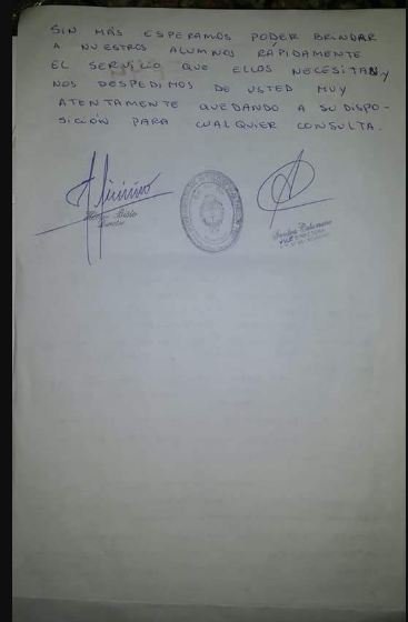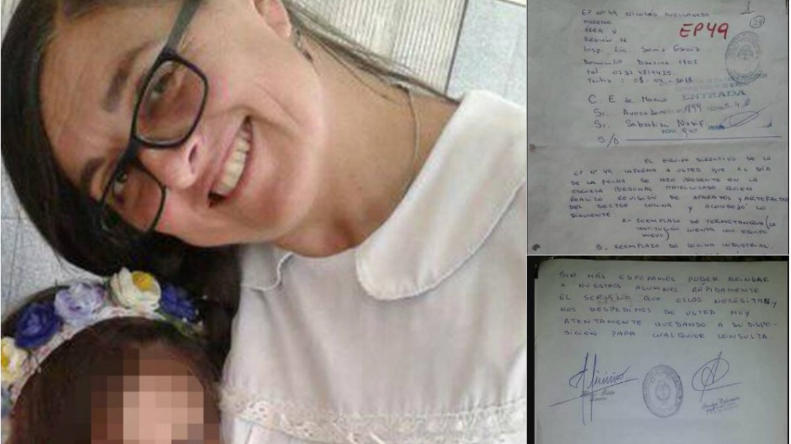 "El equipo directivo informa que se hizo presente personal matriculado quien realizó una revisión de los aparatos en el sector de cocina", escribió Sandra en la nota enviada el 3 de abril de este año, es decir, cuatro meses antes de la tragedia.