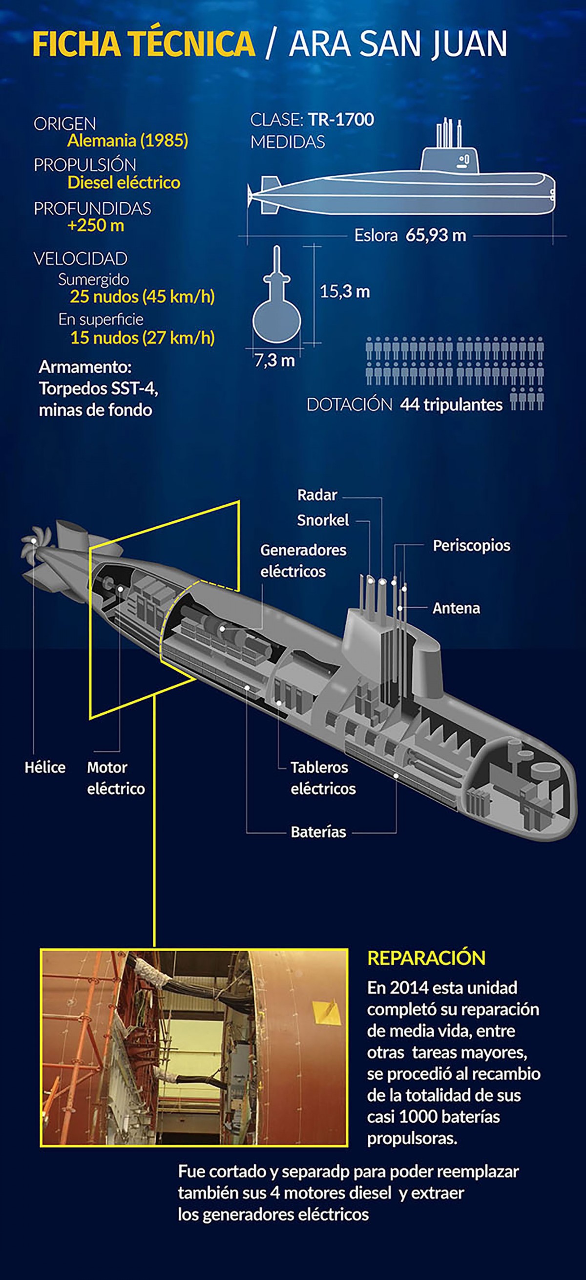 El inconveniente técnico estaba vinculado con problema en los circuitos de las baterías que posee el ARA San Juan, las cuales habían sido renovadas en su totalidad en 2014, cuando la unidad fue reparada por el Ministerio de Defensa.