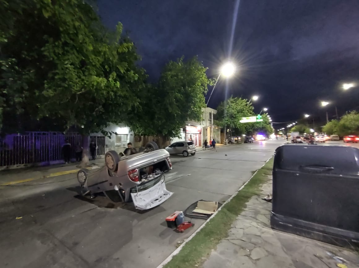 Este viernes, alrededor de las 20, se produjo un violento accidente en una zona muy transitada de la Capital sanjuanina. Un auto que salía de un lavadero impactó con otro, que circulaba por la calle, y éste último terminó volcando.