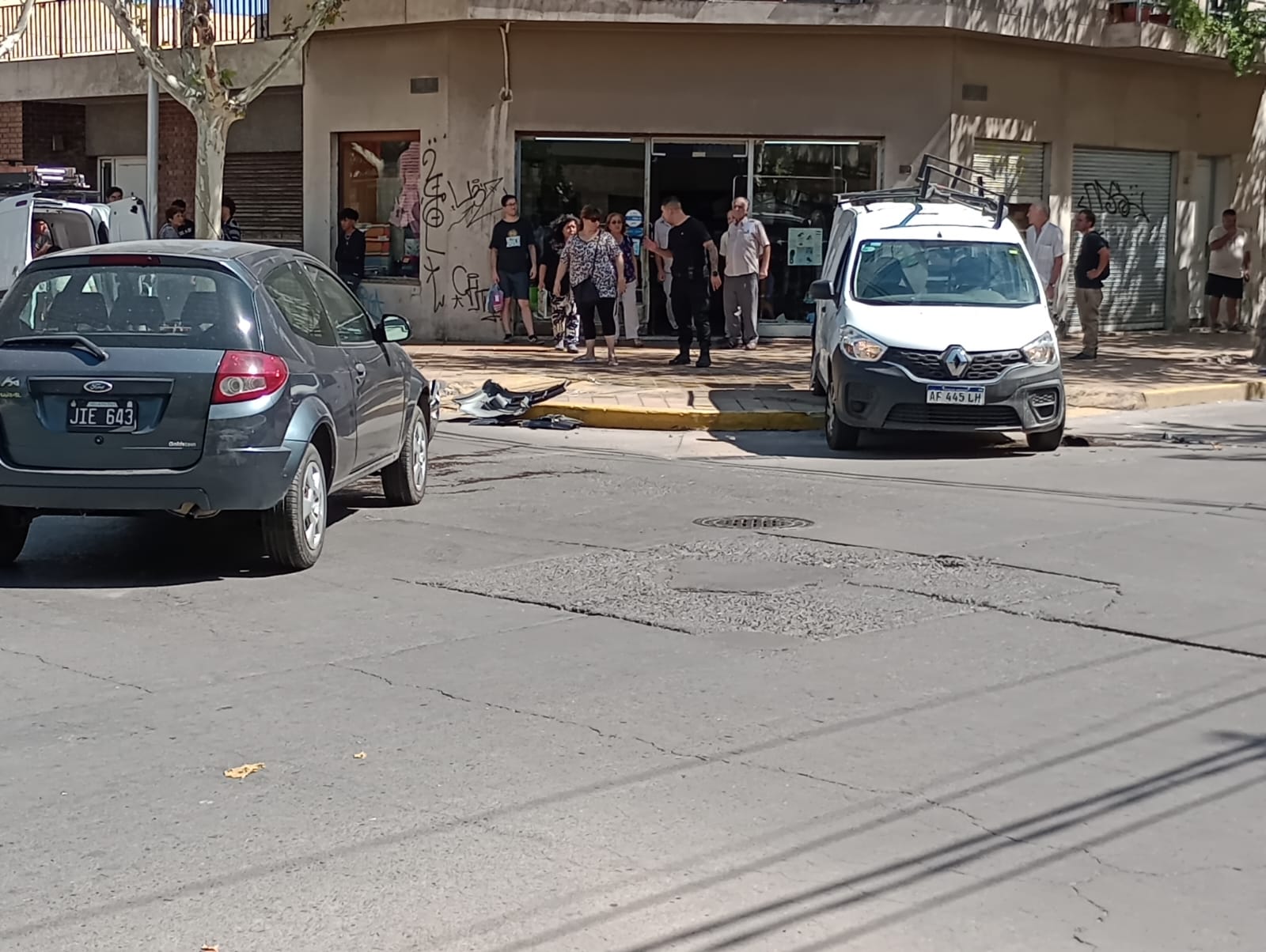 Pocos minutos antes de las 12 de este jueves, en la concurrida esquina de calles Santa Fe y Jujuy, en Capital, se produjo un aparatoso accidente que de milagro no tuvo heridos, en virtud que uno de los vehículos involucrados quedó sobre la vereda, en una hora de mucho tránsito.