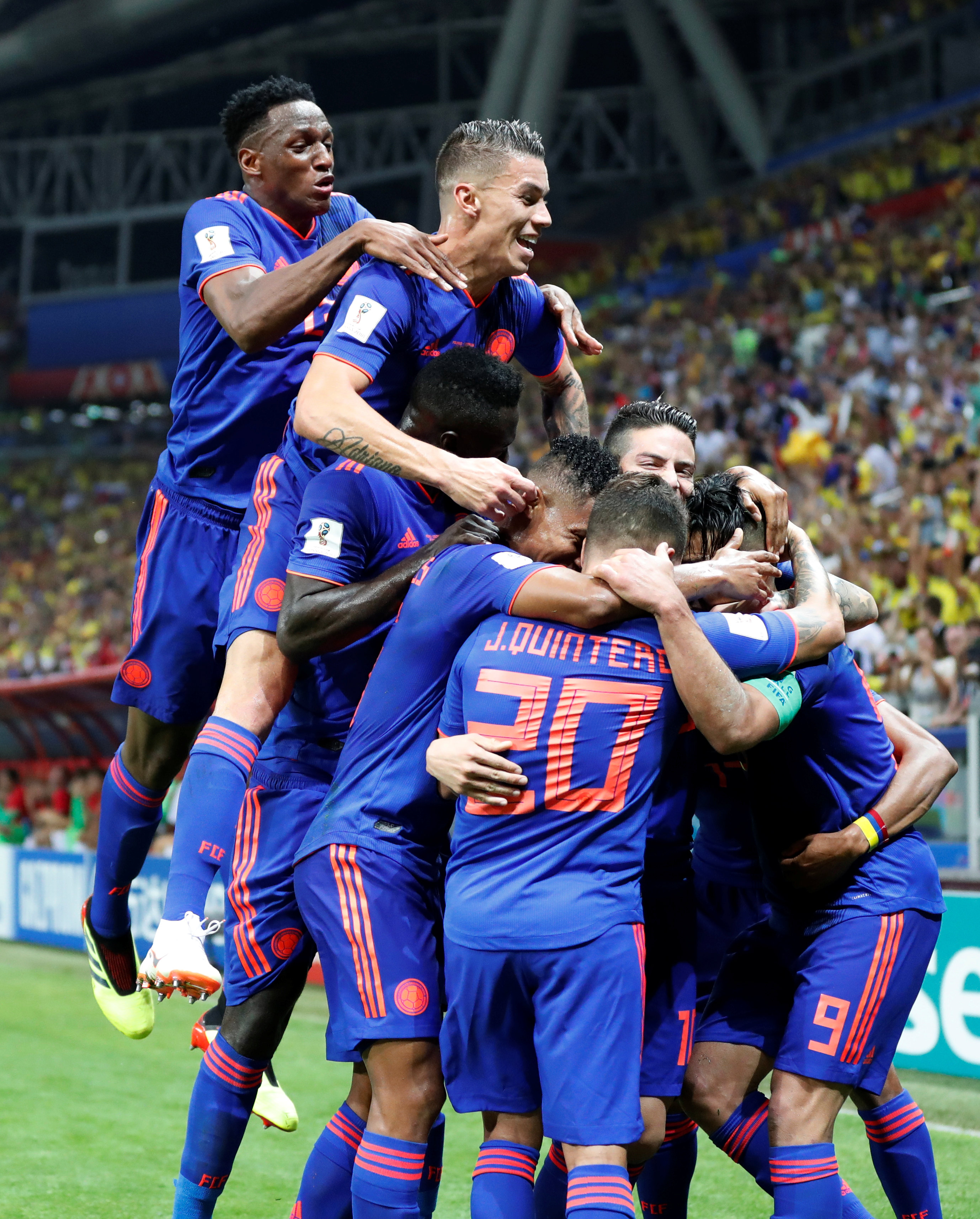 Yerry Mina (40m.PT), Radamel Falcao García (25m.ST) y Juan Guillermo Cuadrado (30m.ST) marcaron los goles del partido jugado en el estadio Kazán Arena, con el arbitraje del mexicano César Arturo Ramos.
