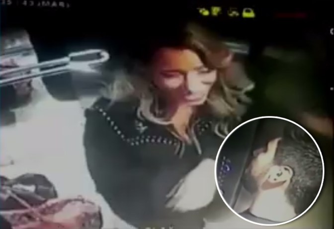 Una grabación de la cámara del ascensor del edificio donde vive Moyano los muestra a ambos juntos a la una de la mañana. Por el look que lleva Nicole, el encuentro ocurrió luego de la cena a beneficio de Fundaleu.