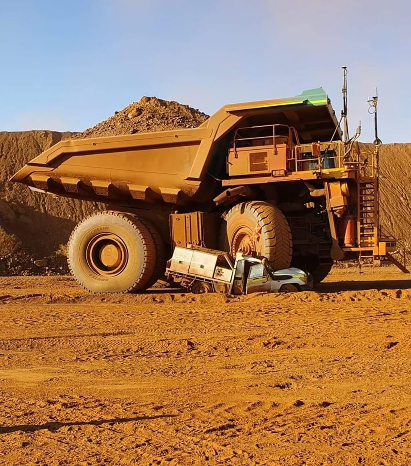 El medio australiano compartió una foto desde el lugar del incidente. Si bien del coche —que tiene aproximadamente el mismo tamaño que la rueda del camión— no quedó casi nada, el autovolquete se ve perfectamente bien, como si no hubiese recibido un solo rasguño. El vehículo personal del operario estaba vacío, por lo que nadie resultó herido.
