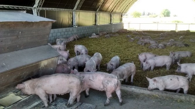 - 9 instalaciones para cría de cerdos con el sistema de cama profunda de 8 x 12,42 metros.