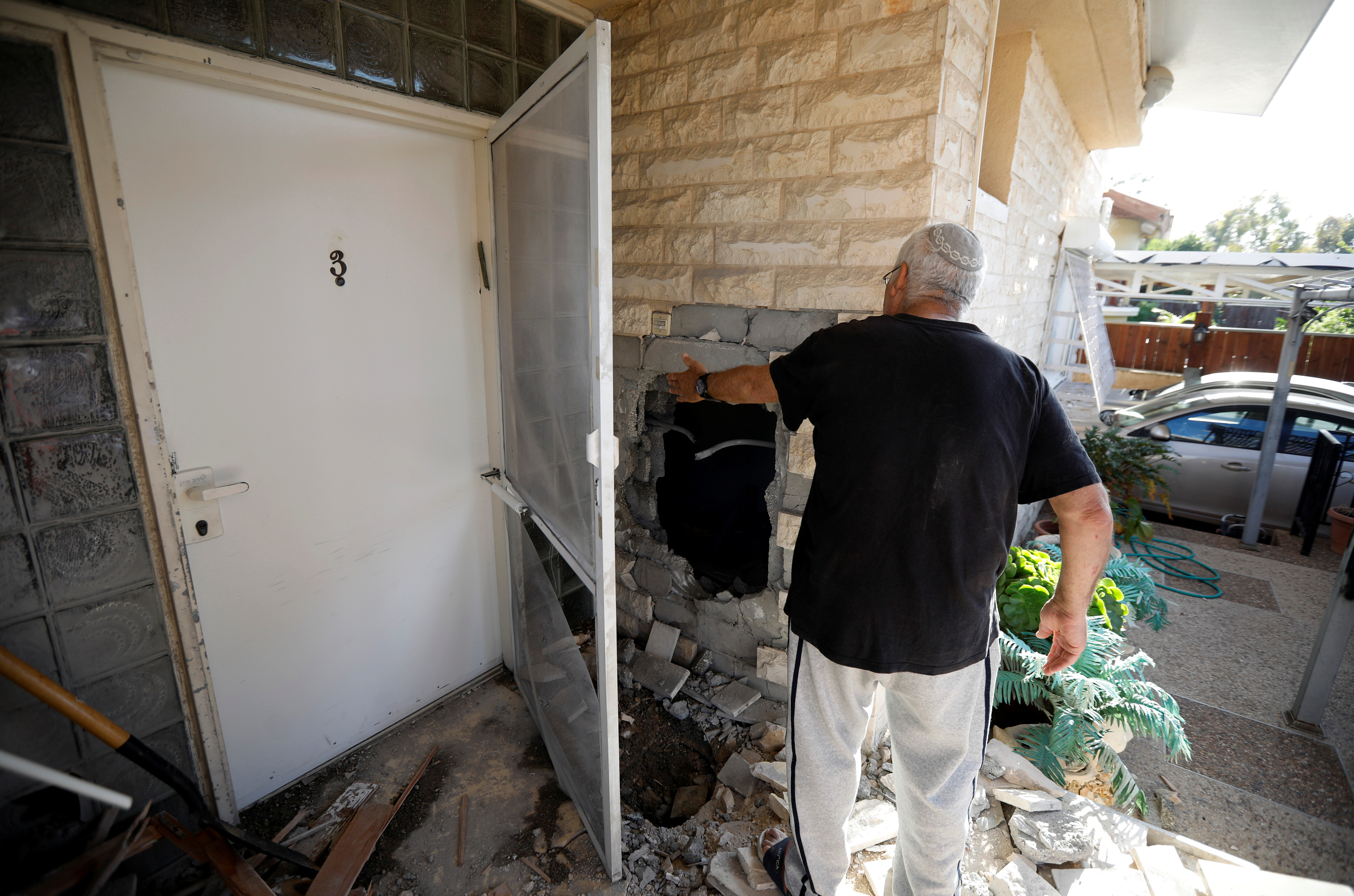Bajo fuego. Un ciudadano del sur de Israel muestra los daños en su casa tras el impacto de un misil lanzado desde Gaza. La respuesta israelí se ha extendido sobre más de 250 objetivos militares en la franja.