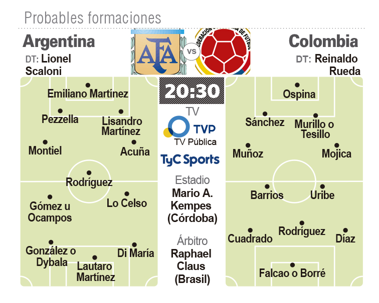 Otra situación a resolver por el entrenador es el posible ingreso de Paulo Dybala en el ataque en lugar de Nicolás González, que jugó desde el inicio ante Chile.